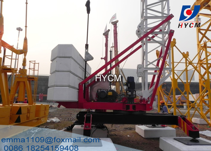 3) Tower mast stretching, jib unfolding and counter weight installation can be finished within the whole range from 0° to 360°. It is the same to crane dismounting.